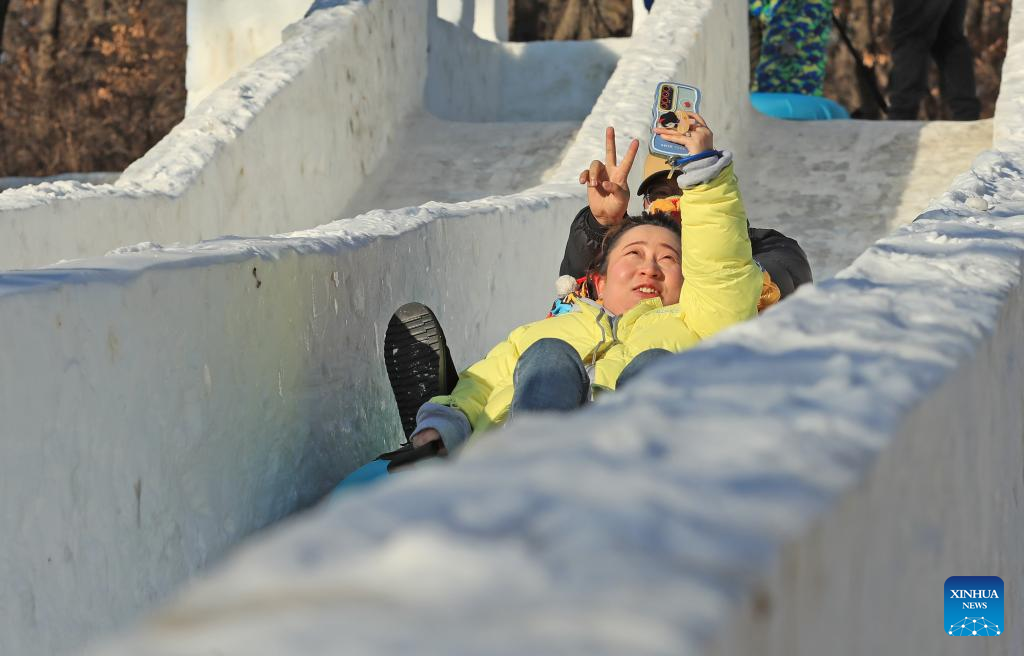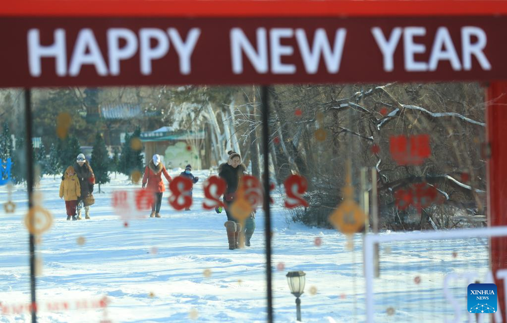 People have fun in Shenyang Expo Garden in Shenyang, northeast China's Liaoning Province, Jan. 3, 2023. (Xinhua/Yang Qing)