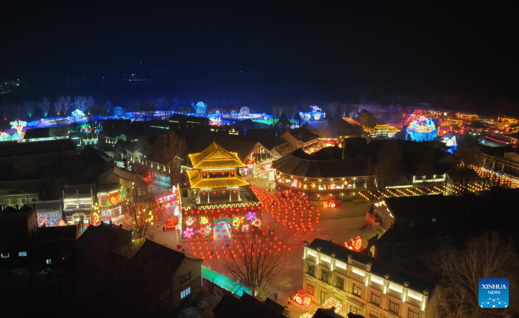 This aerial photo taken on Dec. 31, 2022 shows a lantern fair in Shenyang, northeast China's Liaoning Province. (Xinhua/Yang Qing)