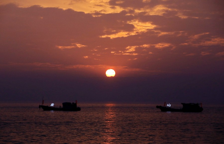This photo taken on Jan. 1, 2023 shows the sunrise scenery in Shanghai, east China. (Photo by Zhuang Yi/Xinhua)