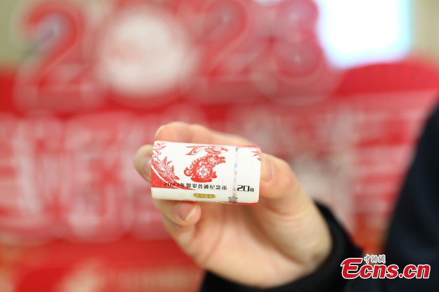 A staff member displays the commemorative coins for the Year of the Rabbit at the Jiangxi branch of the Postal Saving Bank of China in Nanchang, east China's Jiangxi Province, Jan. 5, 2023. (Photo: China News Service/Liu Zhankun)