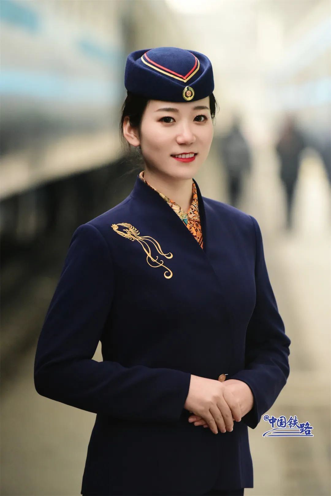 A train attendant in uniform poses for a picture. (Photo/Media Convergence Center of China Railway Urumqi Bureau Group Co., Ltd.)