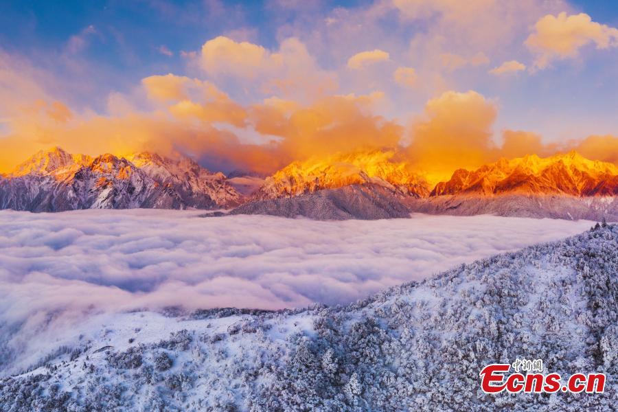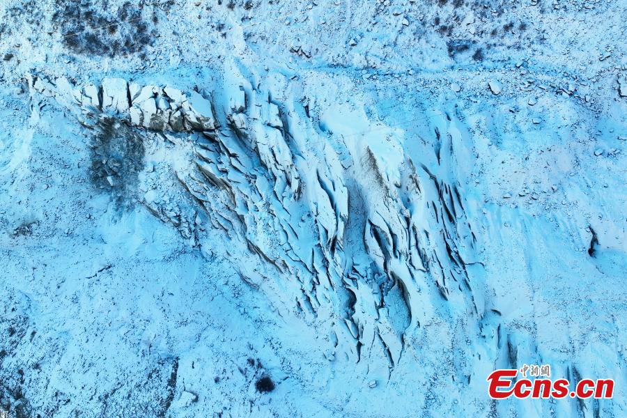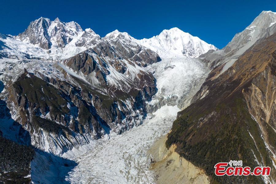 Aerial photo taken on Jan. 9, 2023 shows an icefall coming down from Gongga Mountain in Hailuogou Glacier Park of Luding County, Sichuan Province, four months after the park was rattled by a magnitude-6.8 earthquake. (Photo: China News Service/Liu Zhongjun)