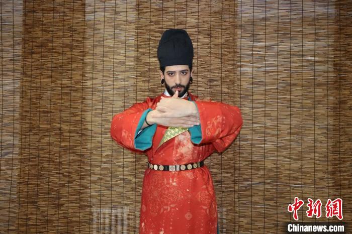 Rian loves the colorful and flamboyant Hanfu style of the Tang Dynasty (618-907) the most, and said that though the traditional outfit is difficult to put on, he feels comfortable wearing it and feels like he is traveling back into ancient times.