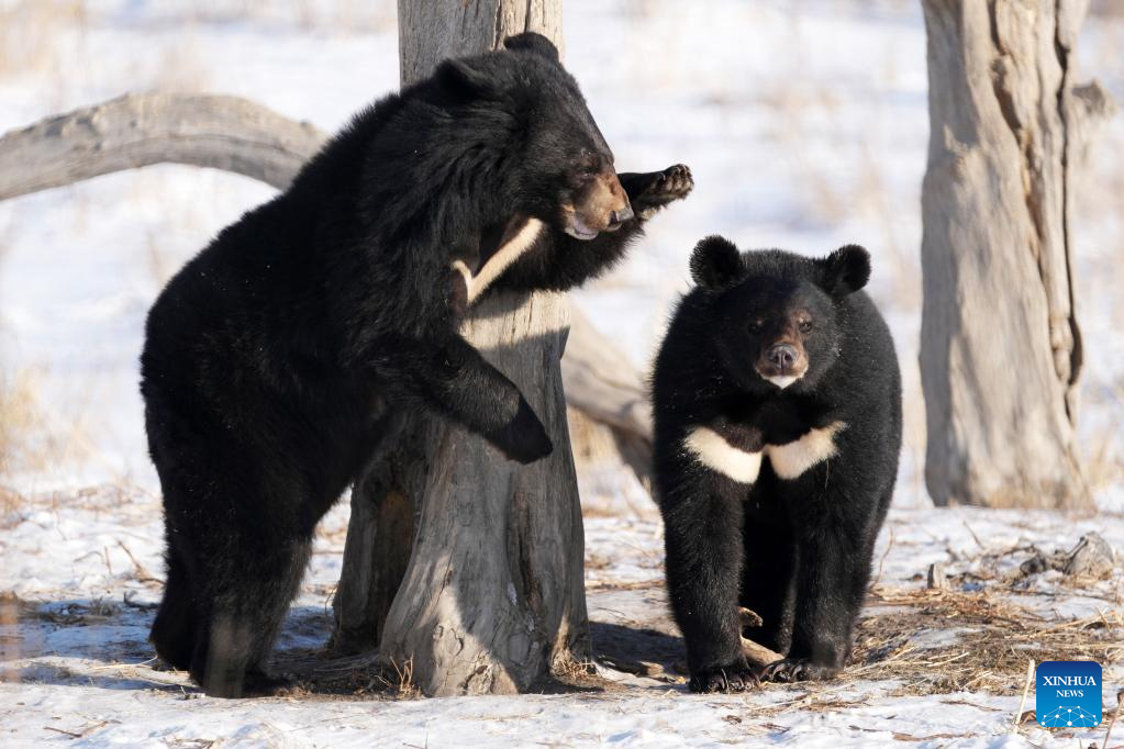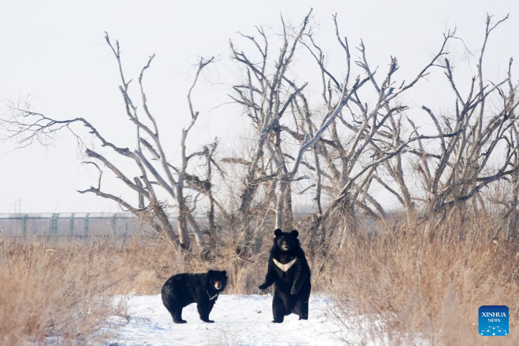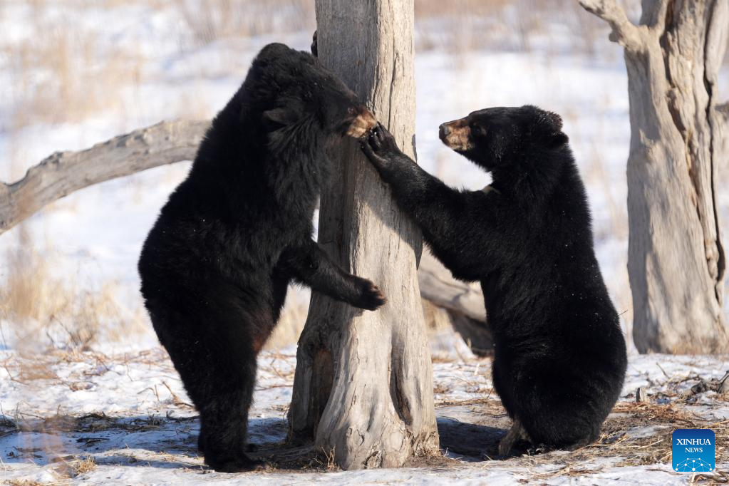 Black bears are pictured in a bear park in Fuyuan City, northeast China's Heilongjiang Province, Jan. 10, 2023. (Xinhua/Wang Jianwei)