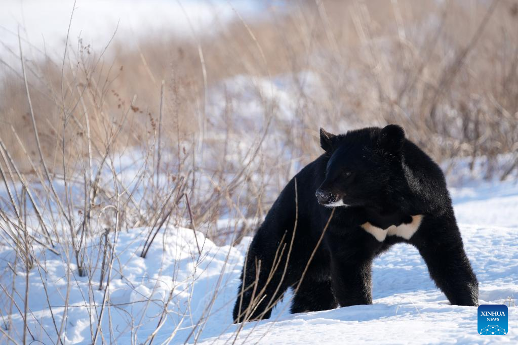 A black bear wanders in a bear park in Fuyuan City, northeast China's Heilongjiang Province, Jan. 10, 2023. (Xinhua/Wang Jianwei)