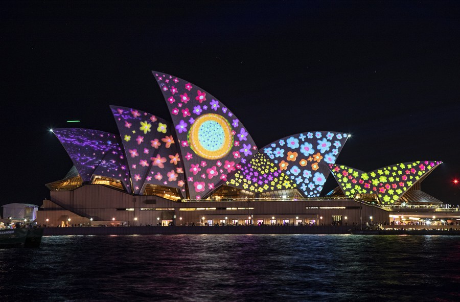 The Sydney Opera House is lit up for the Vivid Sydney in Sydney, Australia, on May 27, 2022. (Xinhua/Bai Xuefei)