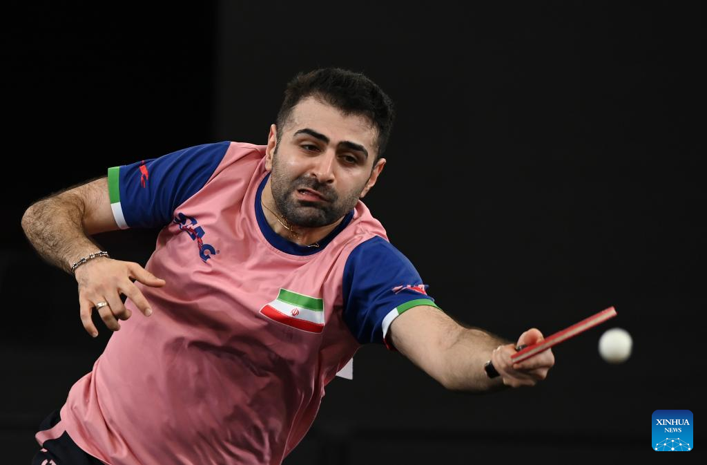 Amir Hossein Hodaei of Iran serves during the men's singles round of 32 match against Xiang Peng of China at World Table Tennis Championships (WTTC) Asian Continental Stage in Doha, Qatar, Jan. 10, 2023. (Photo by Nikku/Xinhua)