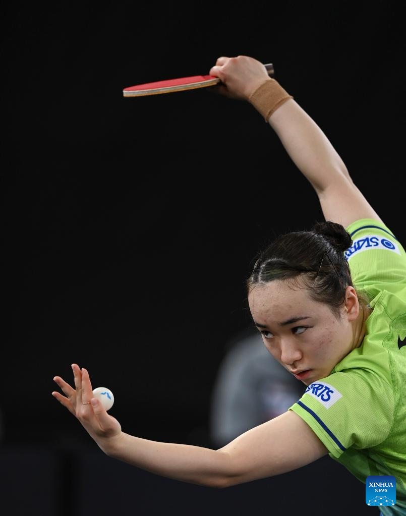 Ito Mima of Japan serves during the women's singles round of 32 match against Jinnipa Sawettabut of Thailand at World Table Tennis Championships (WTTC) Asian Continental Stage in Doha, Qatar, Jan. 10, 2023. (Photo by Nikku/Xinhua)