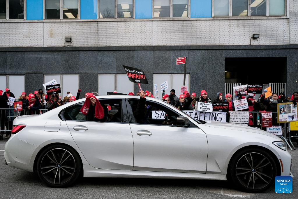 NEW YORK, Jan. 11 (Xinhua) -- Thousands of nurses from New York City's Mount Sinai Hospital and Montefiore Bronx continued to be on strike the third day on staffing shortage, low wage and other issues.