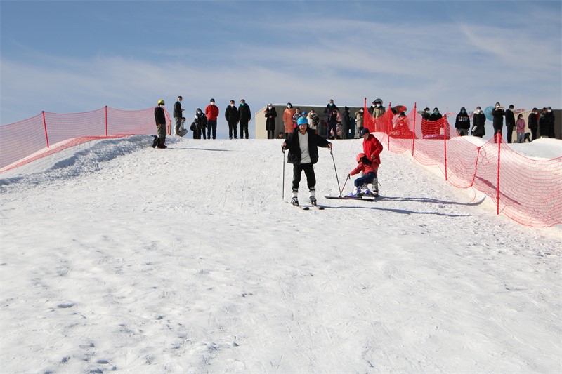 Visitors ski in Golmud, northwest China's Qinghai Province. (Photo/Bureau of Culture, Sports, Radio, Film, Television and Tourism of Golmud)