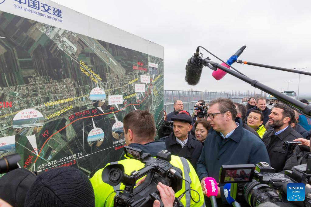 BELGRADE, Jan. 11 (Xinhua) -- A key 7.9-kilometer section of the Chinese-built Belgrade bypass is almost finished with excellent quality, Serbia's President Aleksandar Vucic said after visiting the construction site at an interchange near Surcin, southwest of Belgrade, on Wednesday.