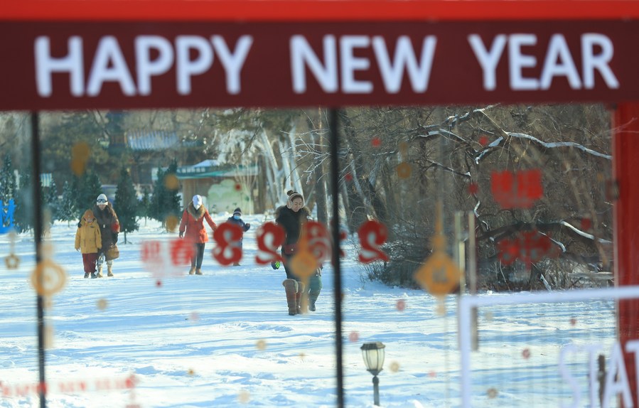 People have fun in Shenyang Expo Garden in Shenyang, northeast China's Liaoning Province, Jan. 3, 2023. (Xinhua/Yang Qing)