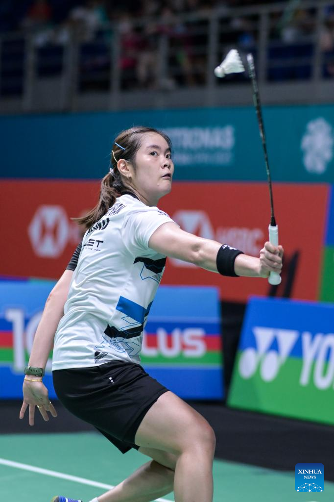 Thailand's Busanan Ongbamrungphan competes during the women's singles round of 16 match against Japan's Yamaguchi Akane at Malaysia Open 2023 in Kuala Lumpur, Malaysia, Jan. 12, 2023. (Xinhua/Zhu Wei)