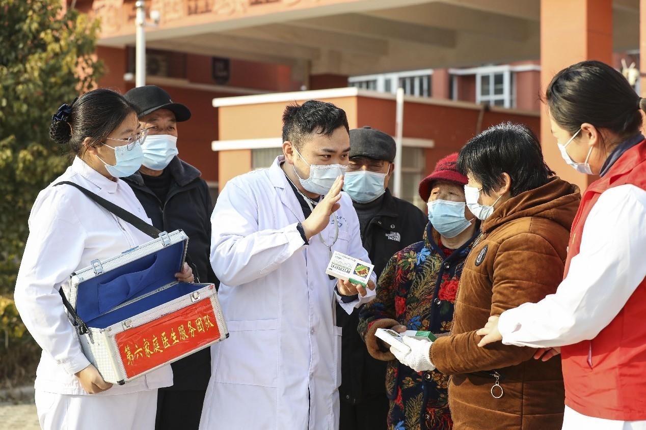 At the beginning of the new year, 31 teams made up of doctors of local public health centers, visited elderly residents of Wangtan township, Keqiao district, Shaoxing city, east China's Zhejiang province, to give supply kits for COVID-19 to them.