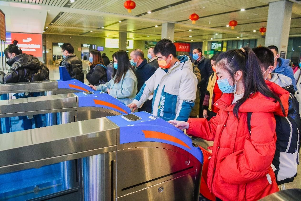 Passengers pass checks by scanning their ID at Qijiang East Railway Station in southwest China's Chongqing municipality, Jan. 7, 2023. (People's Daily Online/Chen Xingyu)