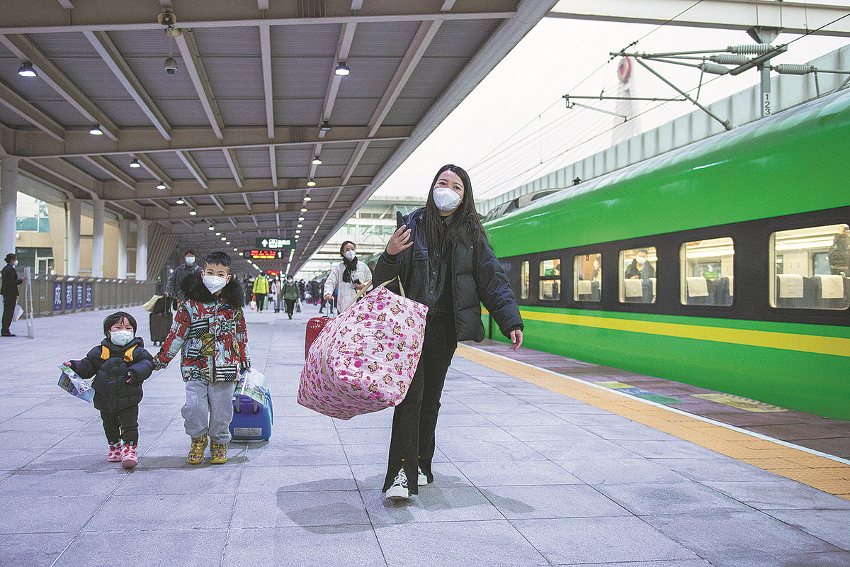 Passengers prepare to board a train at the Chengdu South Railway Station last month. LIU ZHONGJUN/CHINA NEWS SERVICE