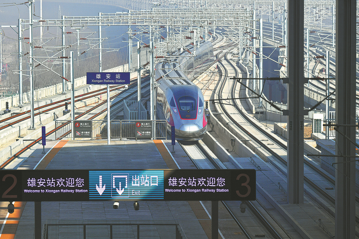 A Fuxing model high-speed train enters the Xiong'an Railway Station, Hebei, in December 2020. SUN LIJUN/FOR CHINA DAILY