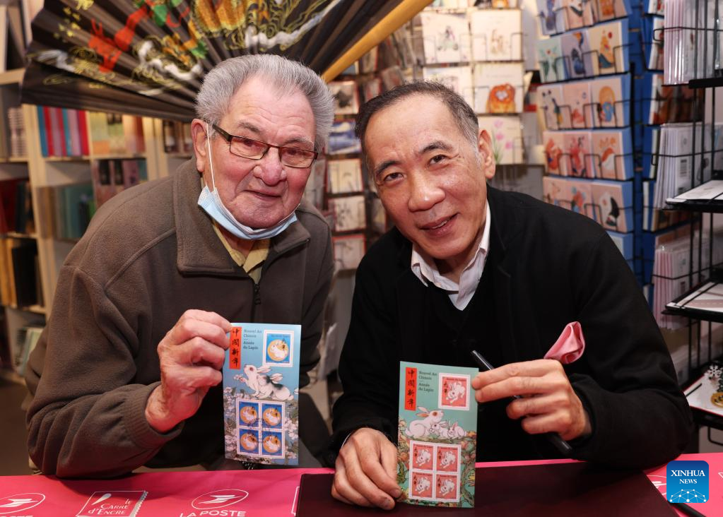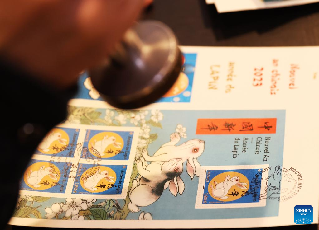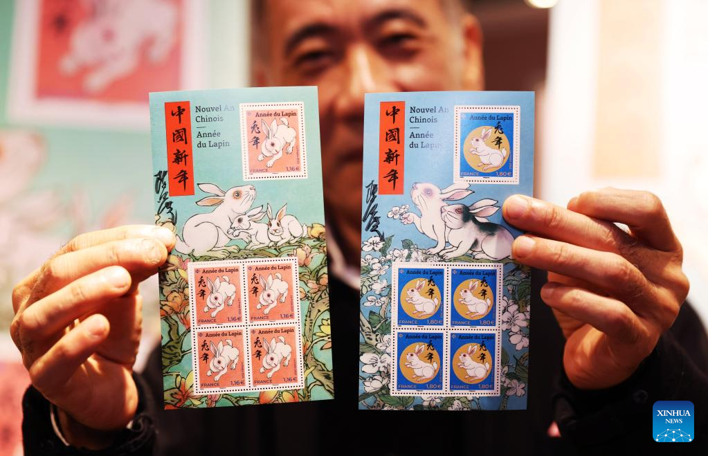 PARIS, Jan. 14 (Xinhua) -- French post office, La Poste, on Saturday issued two stamps to celebrate the upcoming Chinese New Year, the Year of the Rabbit, which starts on Jan. 22.