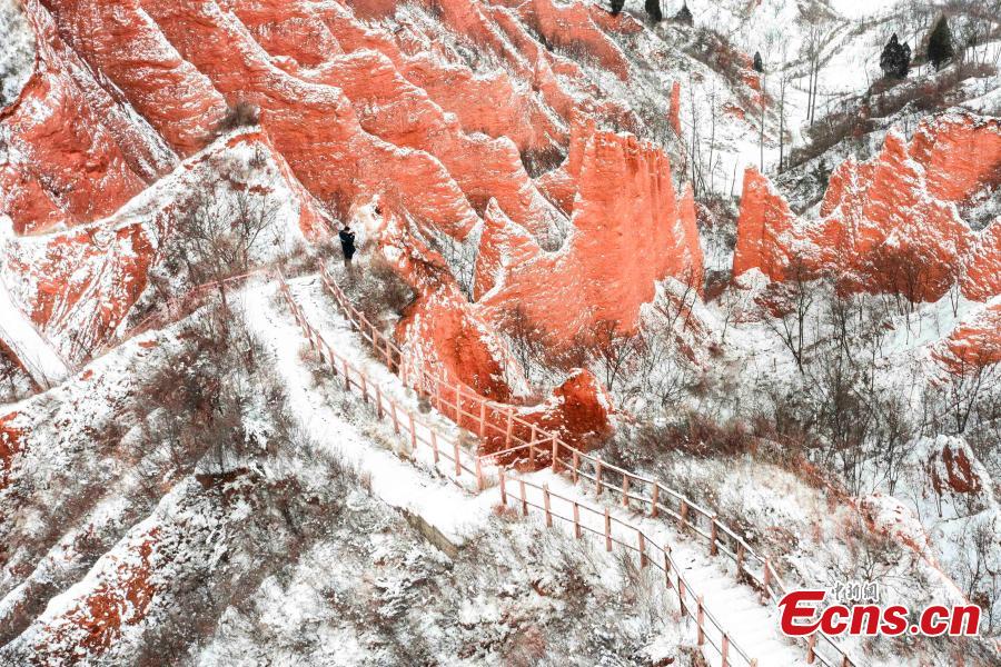 Snowfall adds color to Danxia landform in Henan