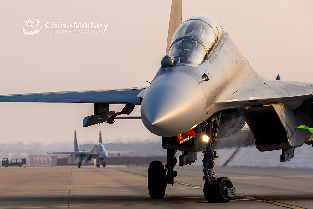 Fighter jet attached to an aviation brigade of the air force under the PLA Northern Theater Command taxi down the runway after a combat flight training exercise on January 3, 2023. (eng.chinamil.com.cn/Photo by Yang Pan)