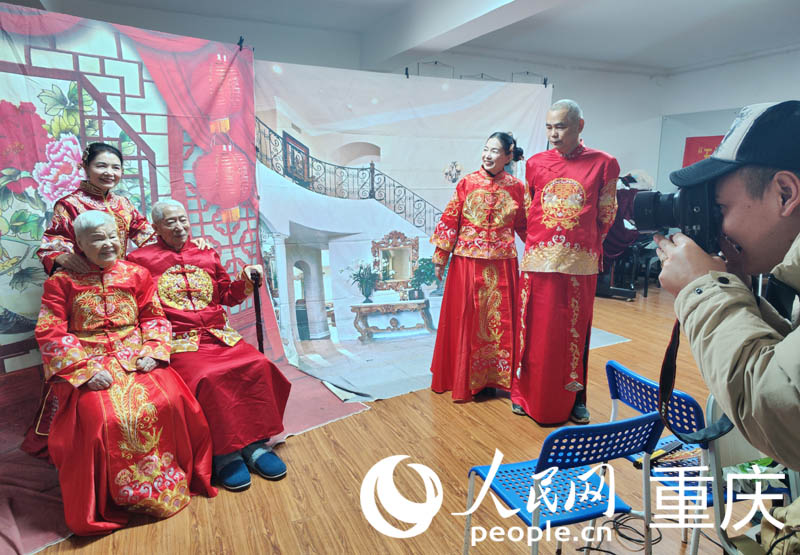 With the Spring Festival approaching, a public welfare organization in Nan’an district collaborated with two residential communities to launch an activity in which elderly couples had their wedding anniversary and family photos taken free of charge.