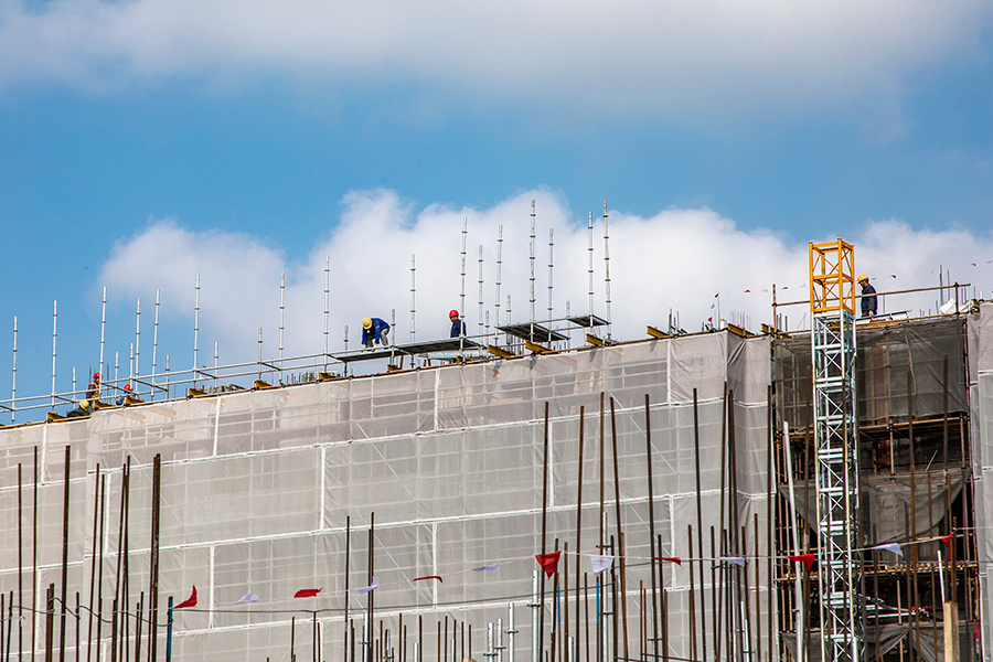 Builders work at the construction site of a housing project in Shanghai. [Photo/China Daily]