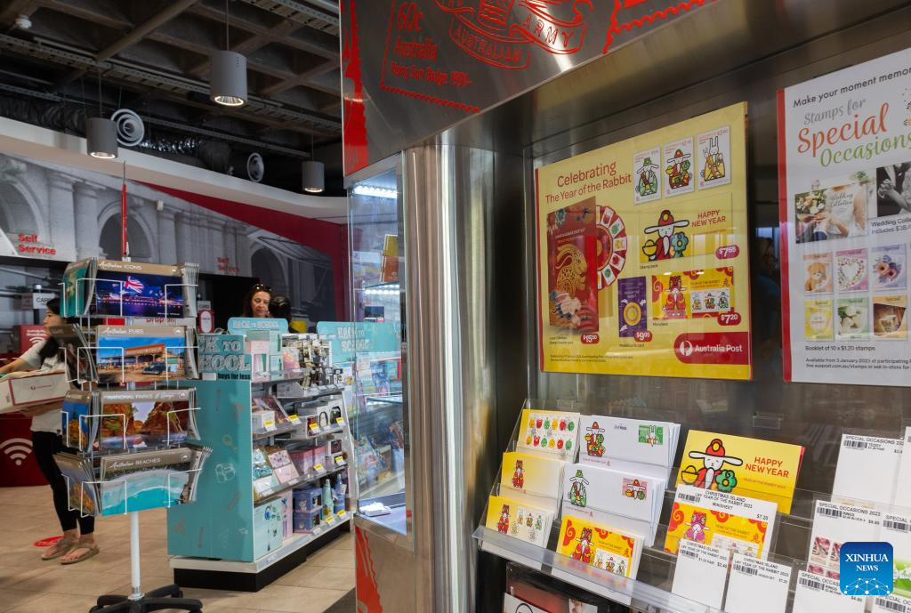 Stamps marking the Year of the Rabbit are seen at a post office in Melbourne, Australia, Jan. 17, 2023. (Xinhua/Bai Xuefei)