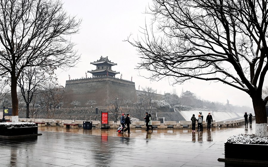 Citizens visit the ancient city wall in Xi'an, northwest China's Shaanxi Province, Jan. 23, 2022. (Xinhua/Tao Ming)