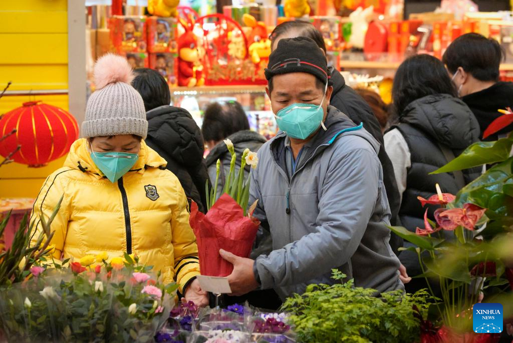 People visit the Chinese Lunar New Year Flower and Gift Fair in Richmond, British Columbia, Canada, on Jan. 17, 2023. (Photo by Liang Sen/Xinhua)