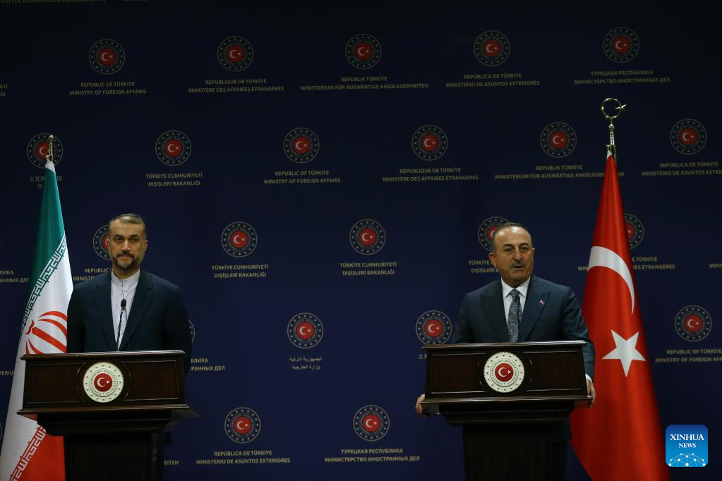 Turkish Foreign Minister Mevlut Cavusoglu (R) and Iranian Foreign Minister Hossein Amir-Abdollahian attend a joint press conference in Ankara, Trkiye, on Jan. 17, 2023. (Photo by Mustafa Kaya/Xinhua)