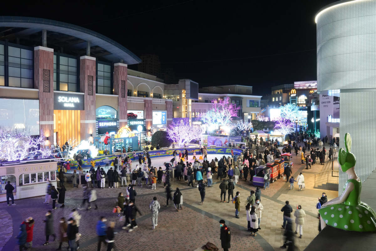 People walk around an outdoor shopping center in Beijing on Dec 24, 2022. [Photo/Xinhua]