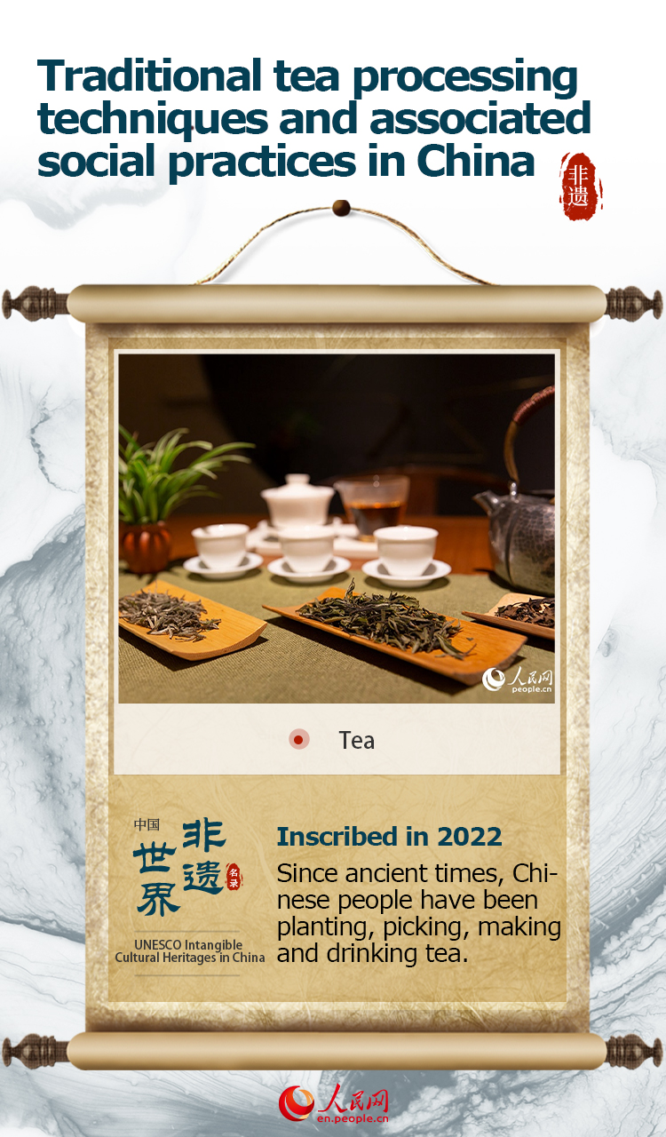 The item "Traditional tea processing techniques and associated social practices in China" was added to the intangible cultural heritage list on Nov. 29, 2022.