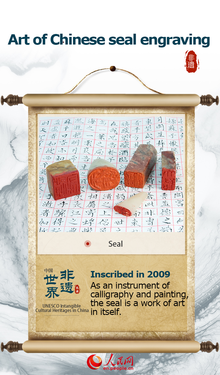 The item “Art of Chinese seal engraving” was inscribed on UNESCO's Representative List of the Intangible Cultural Heritage of Humanity in 2009.