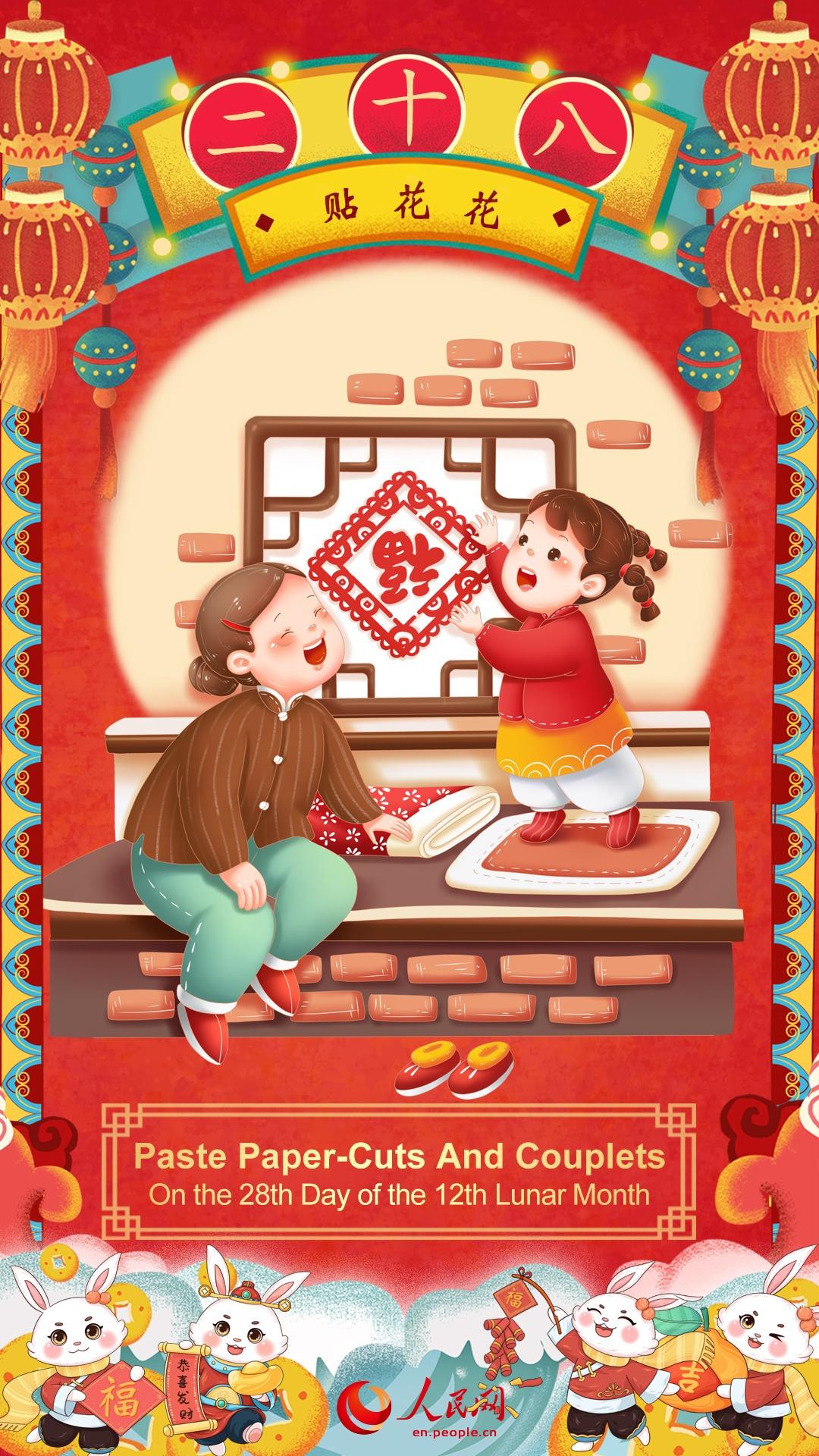 On the 28th Day of the 12th Lunar Month, Paste Paper-cuts and Couplets