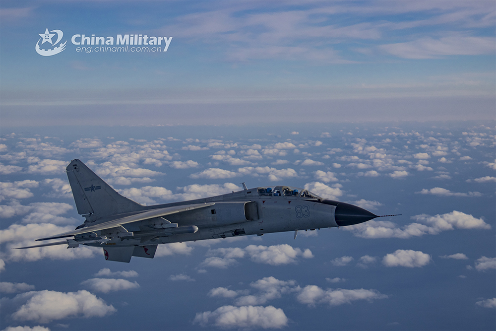 A fighter jet attached to a naval aviation brigade under the PLA Northern Theater Command flies in the sky during a combat-readiness patrol mission in early-January, 2023. (eng.chinamil.com.cn/Photo by Liu Xuhong)