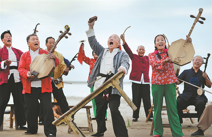 A folk opera troupe performs on the bank of the Yellow River in Weinan, Shaanxi province. ZOU JINGYI/XINHUA