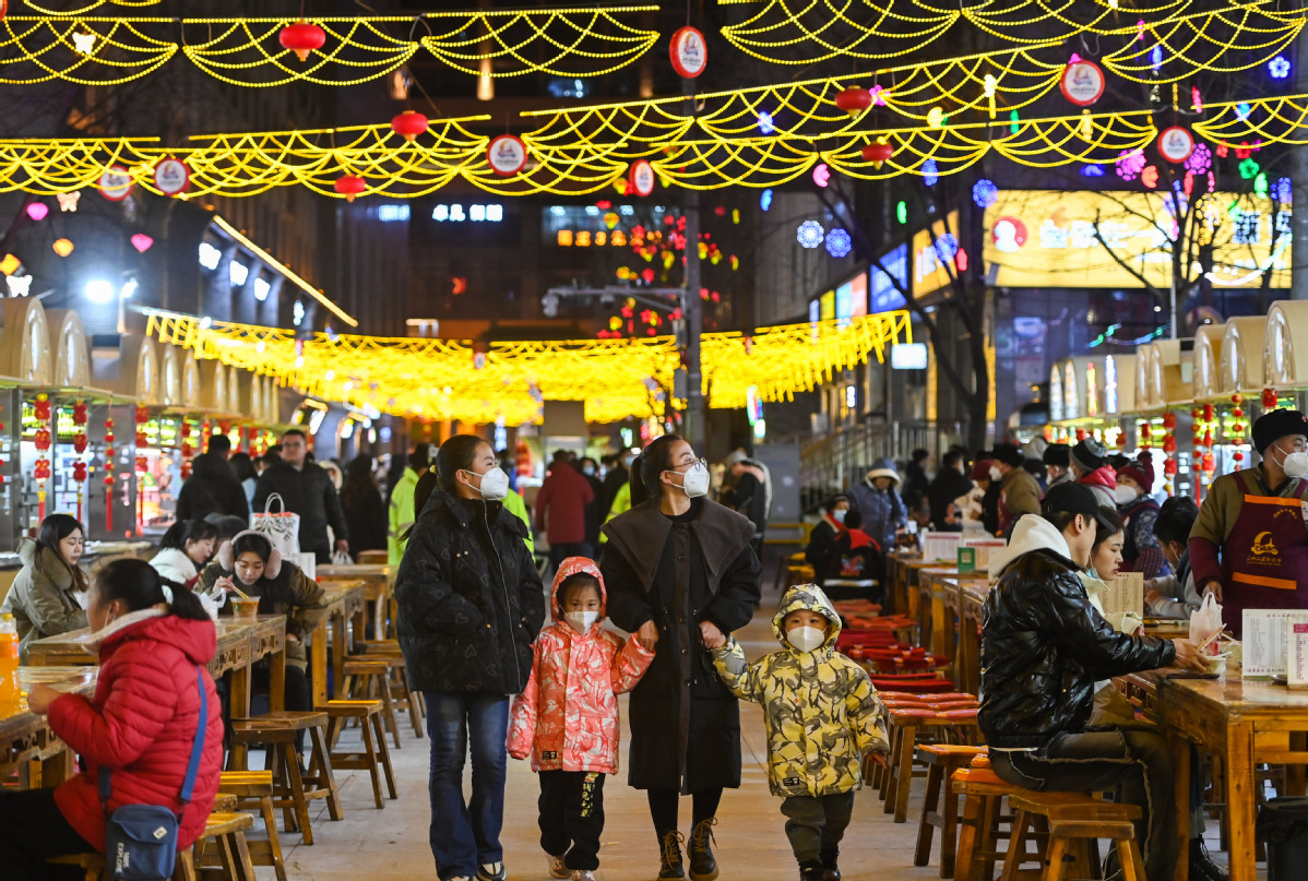 Tourists enjoy a night market in Yan'an, northwest China's Shaanxi province on Jan 13, 2023. [Photo/Xinhua]