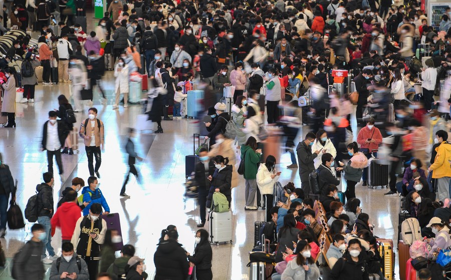 Passengers wait to board trains at Shenzhen North Railway Station in Shenzhen, south China's Guangdong Province, Jan. 18, 2023. (Xinhua/Mao Siqian)
