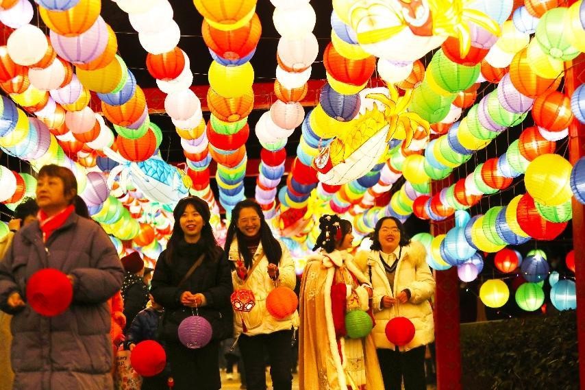 Residents and tourists visit a lantern fair at a scenic spot in Liangping district, southwest China's Chongqing municipality, Jan. 17, 2023. (People's Daily Online/Liu Hui)
