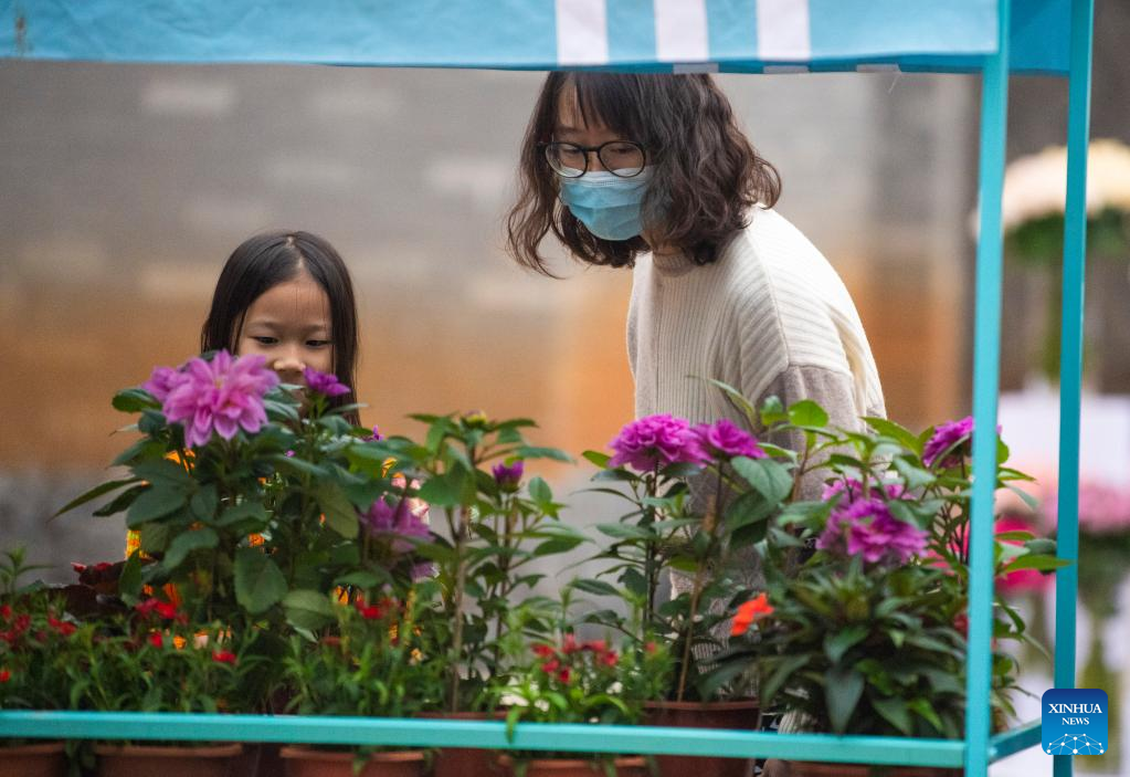 Customers shop for flowers at the Hainan Tropical Flower Trading (Auction) Market in Haikou, south China's Hainan Province, Jan. 18, 2023. (Xinhua/Pu Xiaoxu)