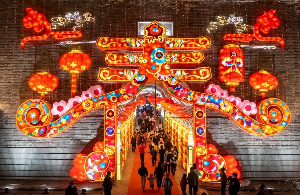People visit a lantern fair in Yuncheng, north China's Shanxi province, Jan. 17, 2023. (People's Daily Online/Yan Xin)