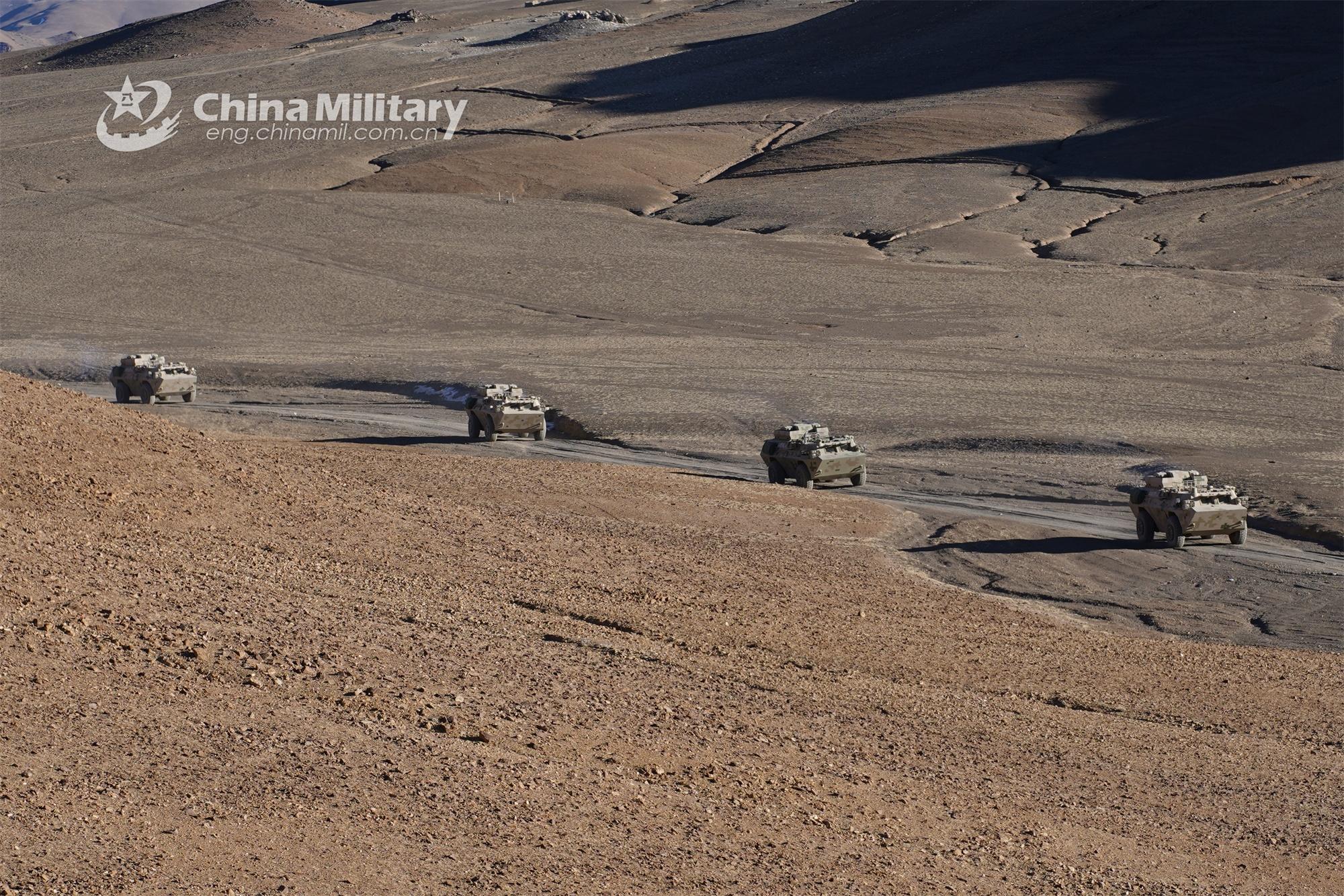 A group of self-propelled anti-tank missile launchers attached to an anti-tank missile element of a combined-arms regiment under the PLA Xinjiang Military Command maneuver to the designed area for a live-fire training exercise on plateau. (eng.chinamil.com.cn/Photo by Ao Xiang)
