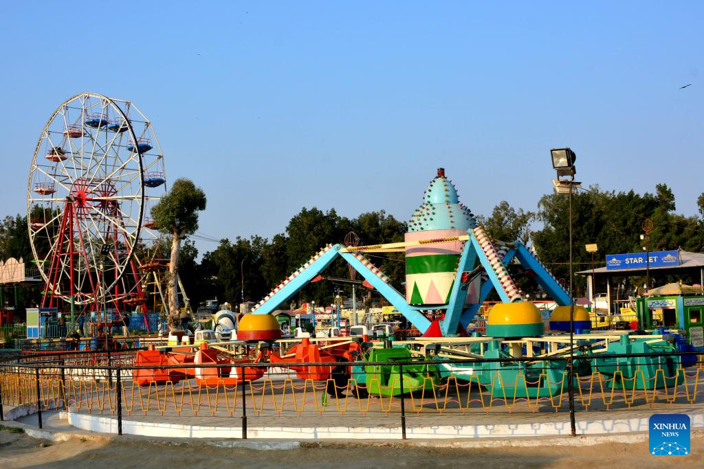 This photo taken on Jan. 23, 2023 shows an empty amusement park during a countrywide power outage in Hyderabad, Pakistan. Millions of Pakistanis encountered power outage on Monday morning after the power distribution system of the South Asian country broke down, said the ministry of energy. (Str/Xinhua)