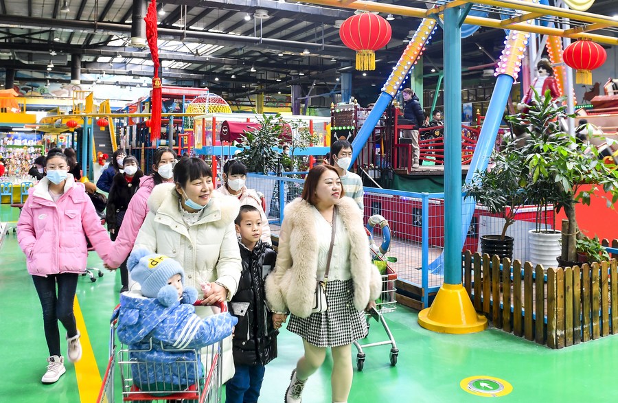 People have fun at an amusement park in Changchun, northeast China's Jilin Province, Jan. 23, 2023.(Xinhua/Xu Chang)