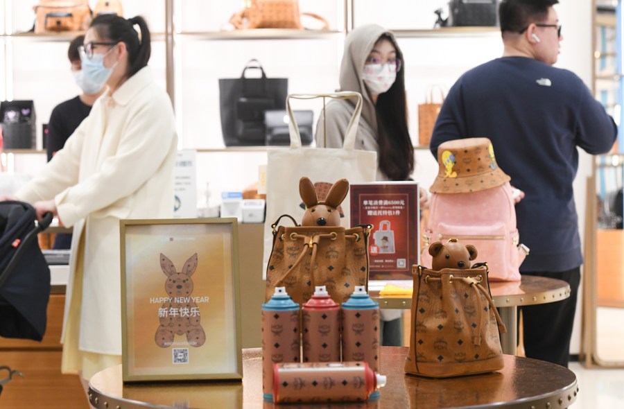 People shop at a shopping mall in Changchun, northeast China's Jilin Province, Jan. 23, 2023. (Xinhua/Xu Chang)