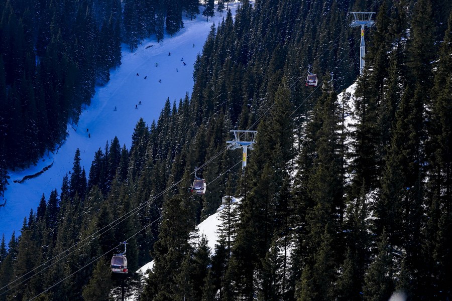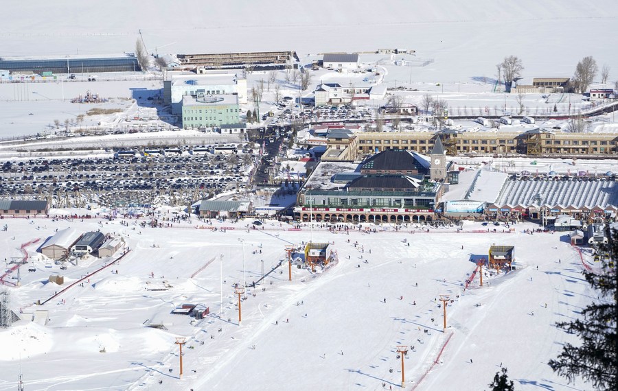 People come to a ski resort on the suburbs of Urumqi, northwest China's Xinjiang Uygur Autonomous Region, Jan. 25, 2023. (Xinhua/Zhao Ge)