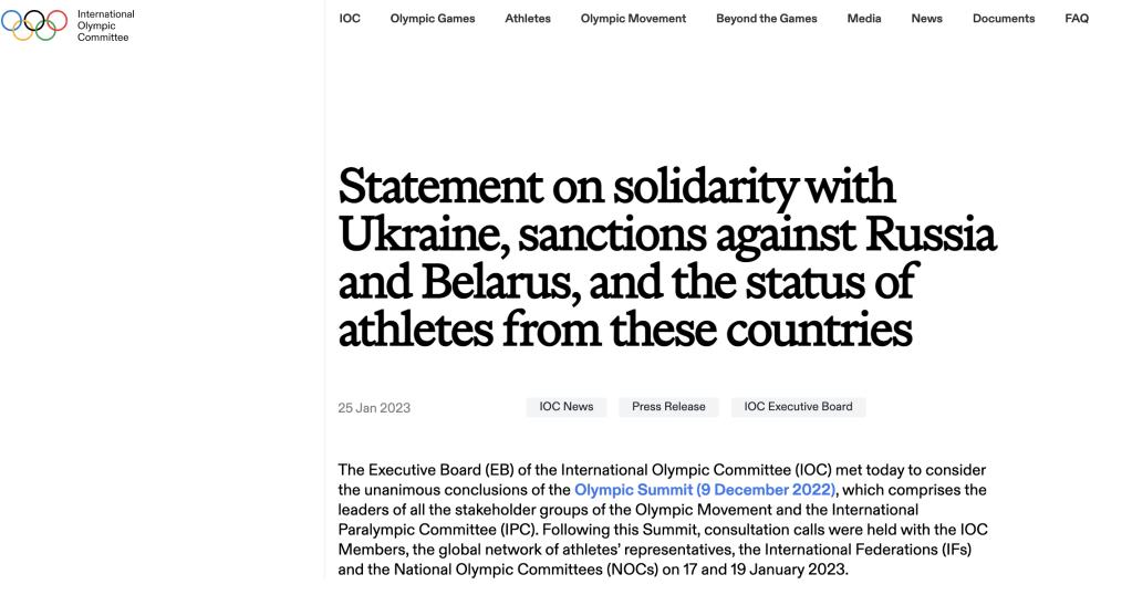 - IOC seeking to allow Russian, Belarusian athletes back to international competitions