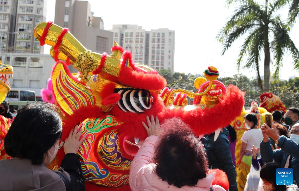 People watch dragon dance in Hong Kong, south China, on Jan. 28, 2023. (Xinhua/Li Gang)