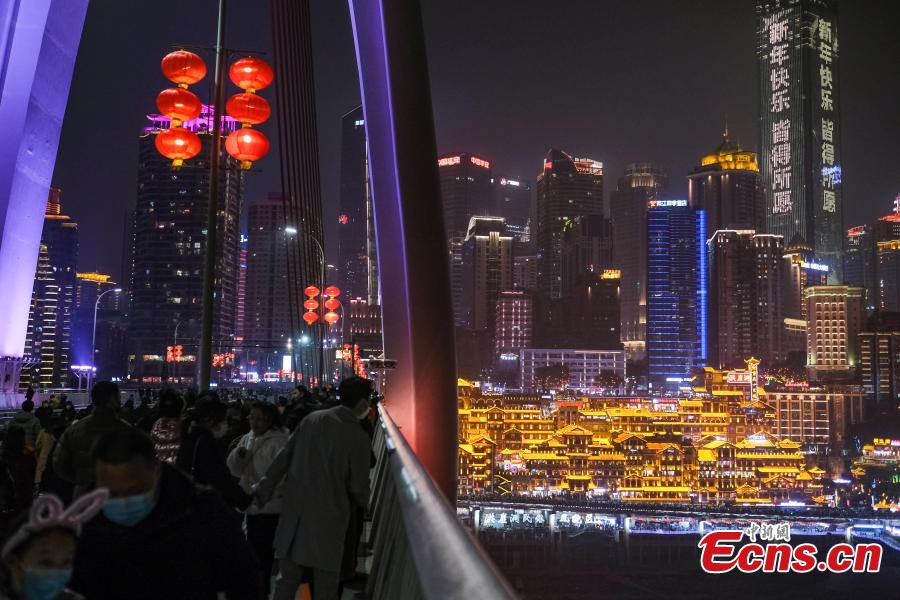 Night view of Hongya Cave draws tourists to Chongqing (2)