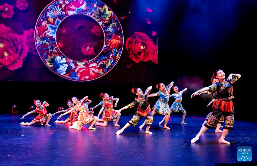 Artists perform during the 2023 Happy Chinese New Year Glories of Huaxing Gala Night in Auckland, New Zealand, Jan. 29, 2023. (Photo by Sun Xueliang/Xinhua)